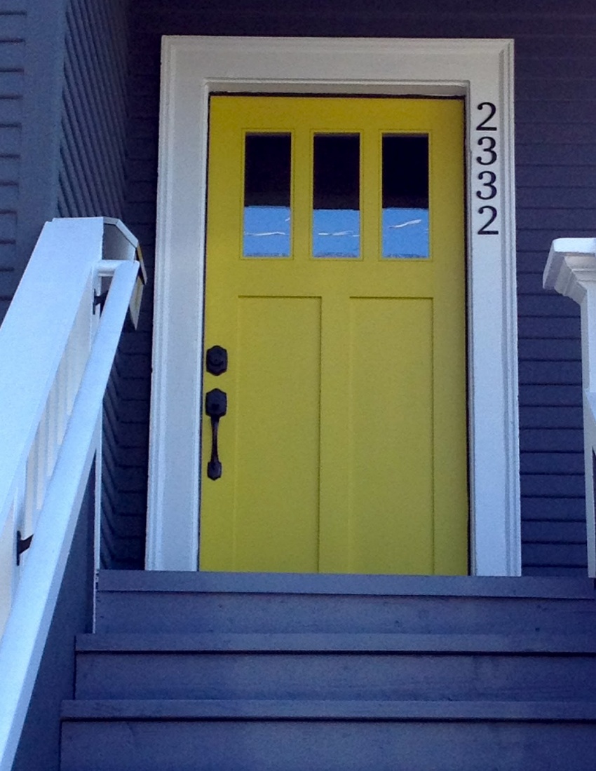 Red and black doors seem to be very common, but every once in a while, I had the opportunity to paint with a few more fun colors, like yellow, blue, and green. Color choices, for a front door, are quite often an expression of the type of person that lives behind that door. Traditional colors for those that want to play it safe. An attractive stained wooden door portrays more sophistication and elegance. Bright cheerful colors convey the appearance of happiness and playfulness.