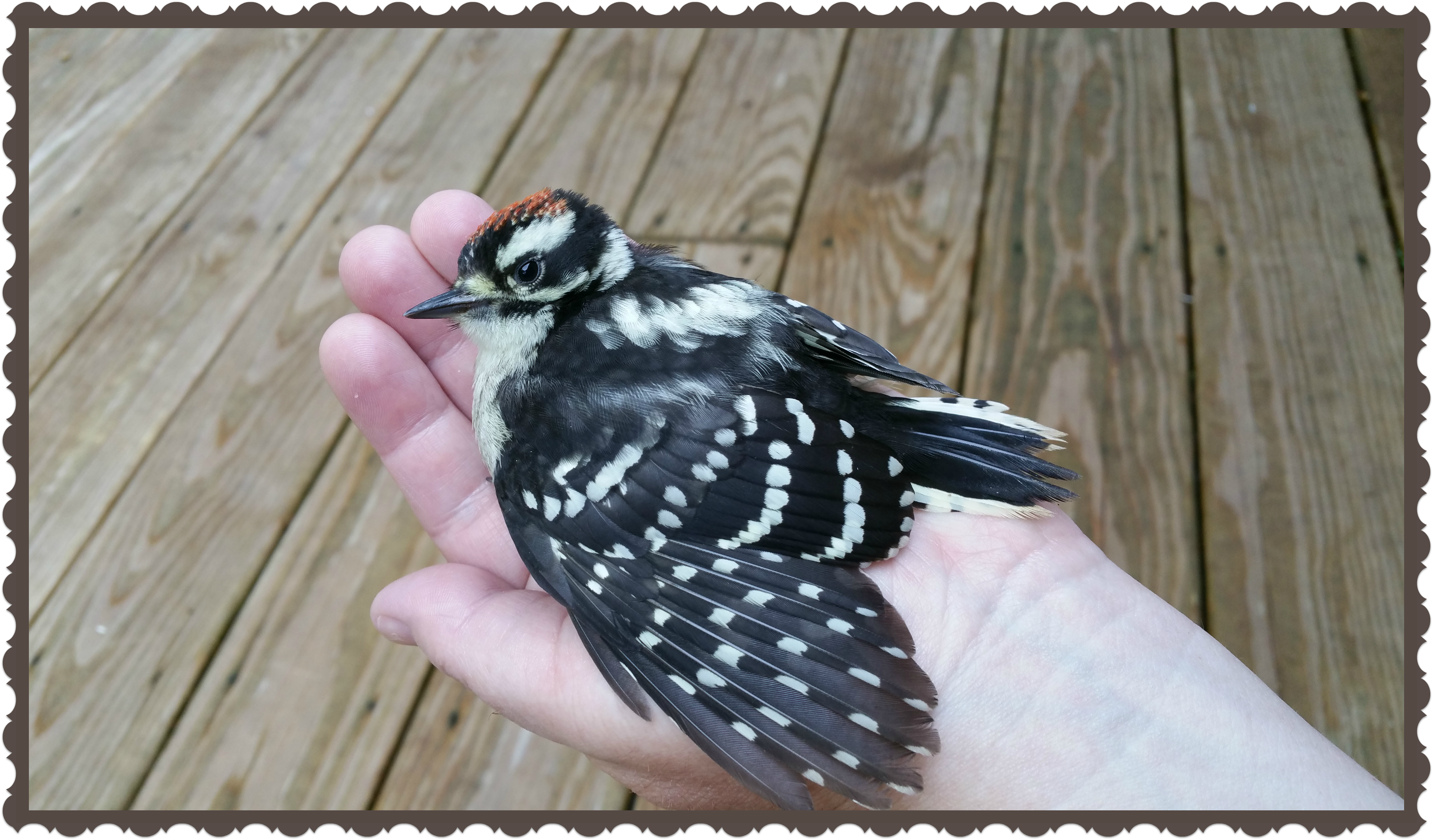 Then shortly, after the first baby bird’s visit, we came home to a baby woodpecker sitting on our deck. He did look fine…just learning to fly, I think…and there were grown ups around. My only concern was that for most of the day our deck is entirely in the sun…so I did move him to the base of the tree where I had seen other woodpeckers feeding young ones. My last view of him, he was climbing up the tree towards home. I couldn’t manage to watch any longer, as it was probably only a week or so after the first little one passed and didn’t think my heart could take it if I saw this little one not make it too.