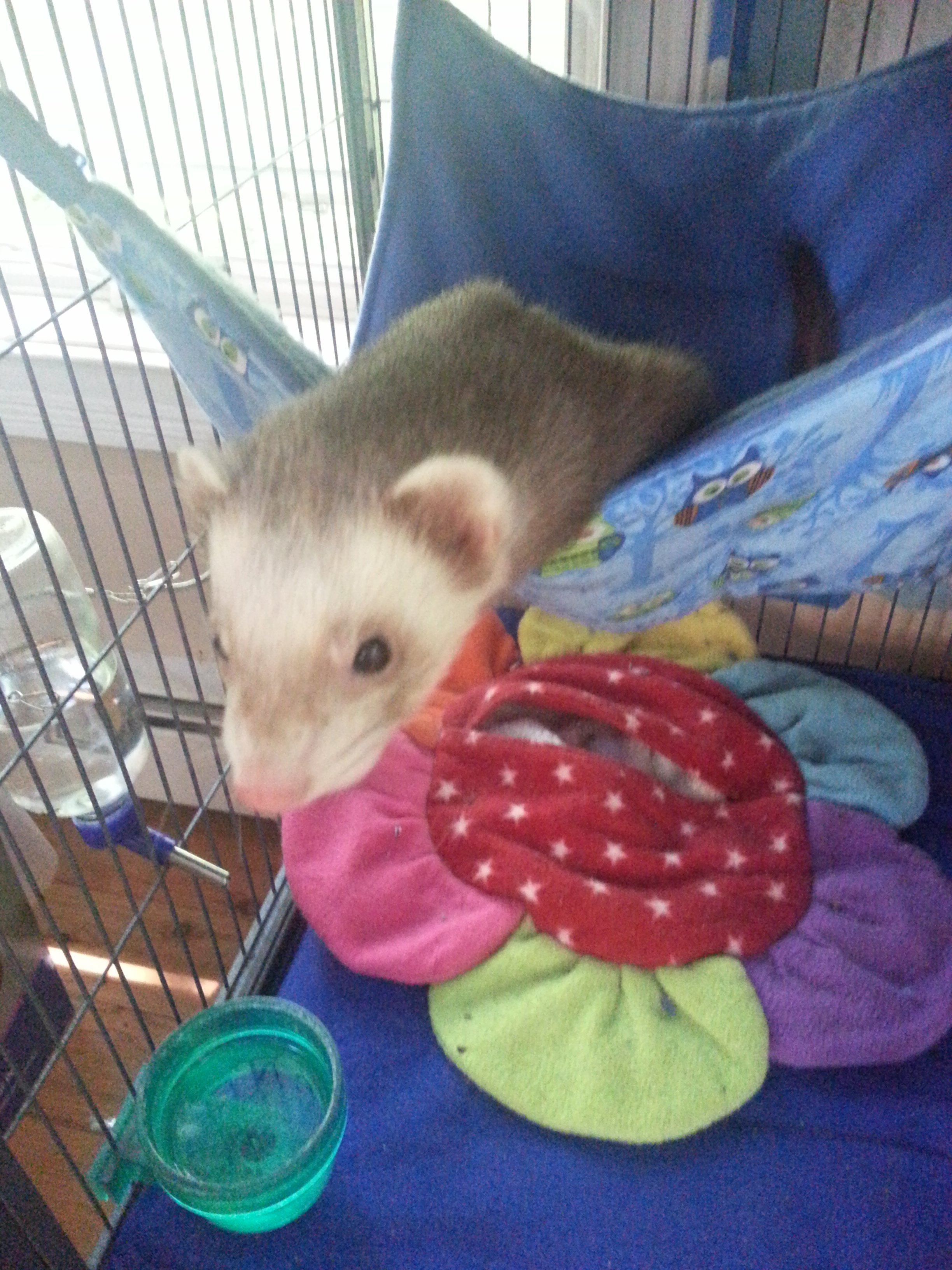 We happened to be in the pet store right before closing a day or so before my birthday, and while he was getting some mice for his snake’s dinner, I was distracted by this adorable little ferret in the cage. Of course, one of the sales people offered to let me hold her…I know now, this is never a good thing for me!! Good for the animal…because they tend to come home with me…but not so good for me, as this is how my home has become filled with a menagerie of animals. Which in the grand scheme of things, really isn’t a bad thing…cause I couldn’t imagine life without animals.