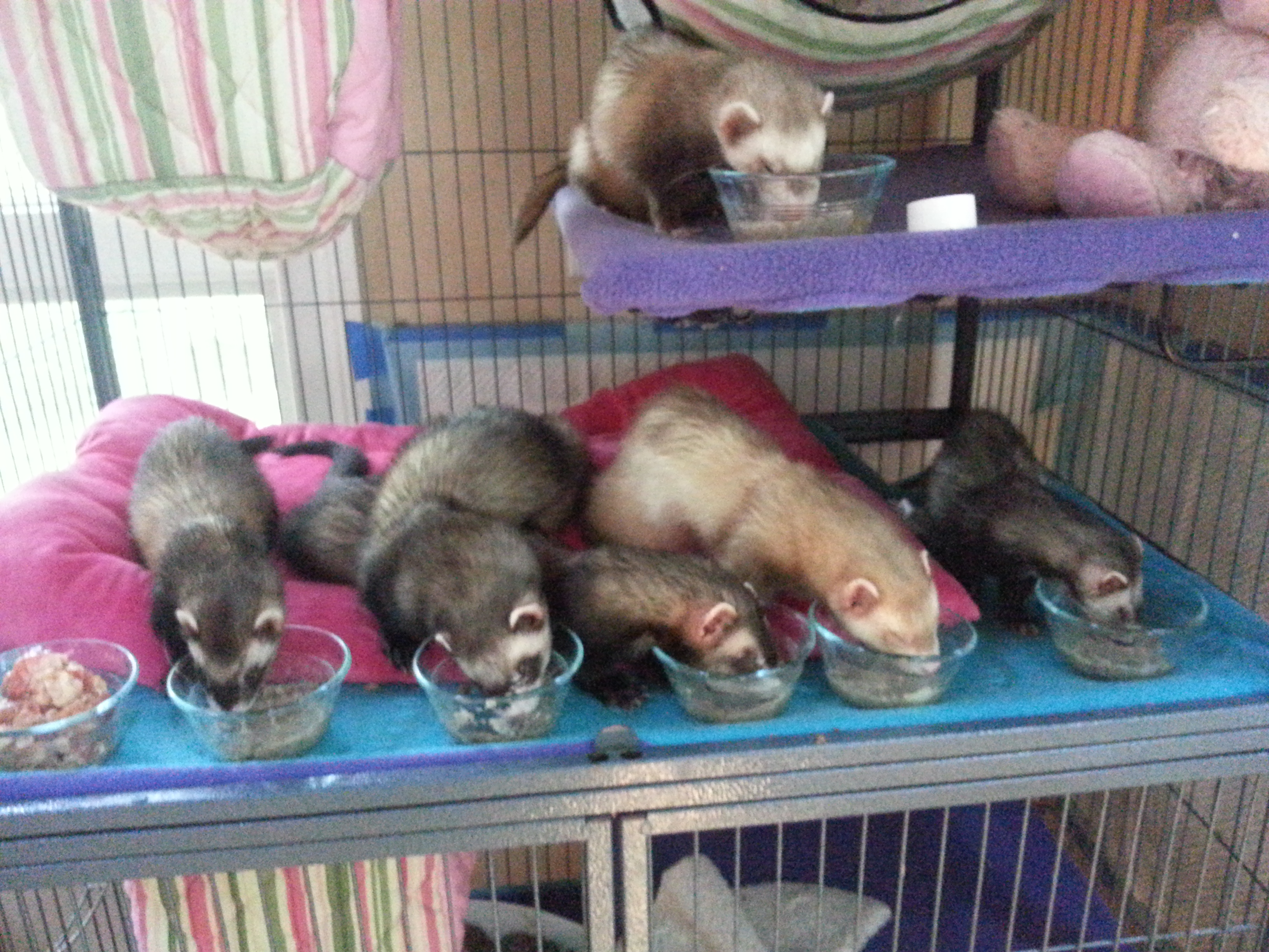Had I known how awesome these little critters were years ago, I am sure I would have gotten them sooner. Ferrets are adorable and so amusing! They are like having a litter of kittens around…playful, silly, very mischievous, and oh so adorable!!! These little faces bring a smile to my face every day!
