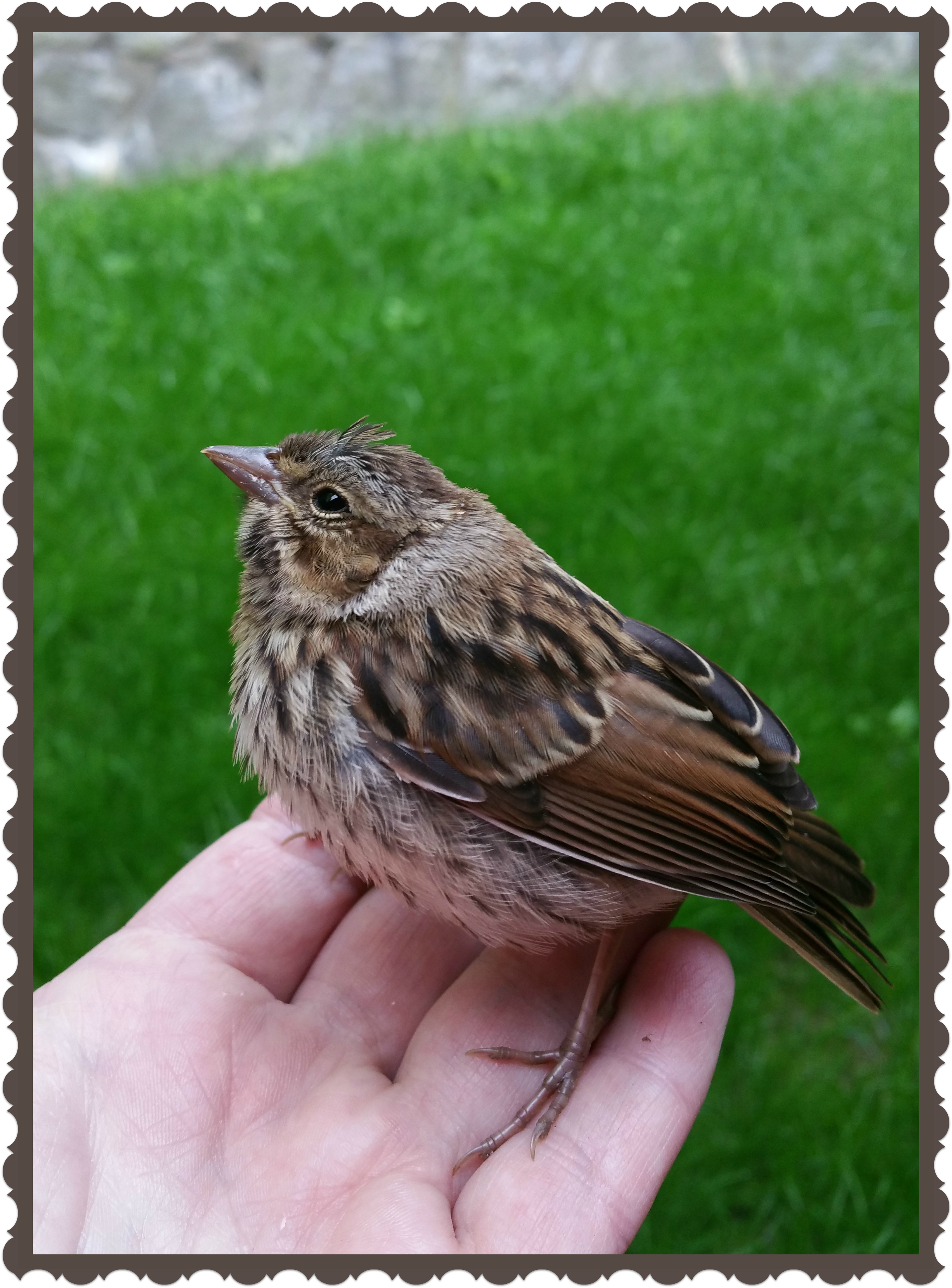 Then earlier this summer, I also got the opportunity to ‘meet’ 2 other fledgling babies. One of which I think flew into a window and landed in the front yard. He seemed to have one swollen eye and was a little off balance. I was worried that he would not be safe on the ground overnight so I did put him in a little carrier for the night and he made it til morning…which made me happy. But then I left him in the crate with the door open, in the grass where he had landed, but at some point during the day he ended up dying. Which broke my heart! Such a sweet little thing…but I think he just hit the window too hard and probably gave himself a little birdie concussion 🙁